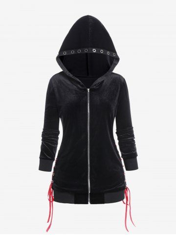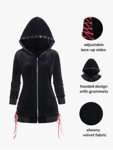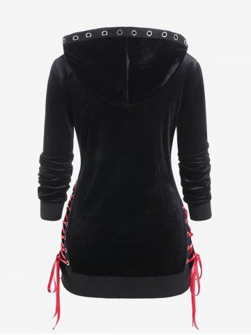 Y*****e5Gothic Lace Up Crisscross Grommets Flounce TeeColor: BLACK Size: 3X | US 22-24Love the lacing and the lace trim on bottom. Super cute top hugs my curves and looks very flattering! This will be one of my faves! It’s a polyester fabric, medium sheerness so should be good in warmer and cooler weather.