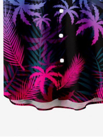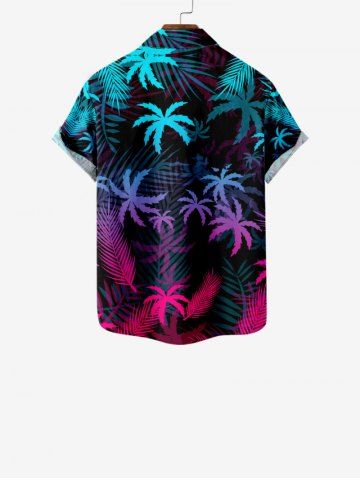 Kid's Ombre Coconut Tree Palm Leaf Print Buttons Pocket Hawaii Shirt - Negro - Negro