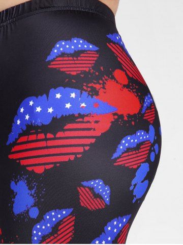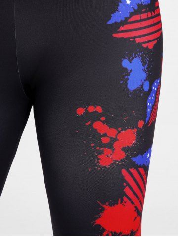 Leggings Capri de Bandera Patriótico con Estampado de Bandera de Estados Unidos - Negro - Negro