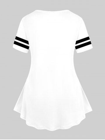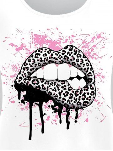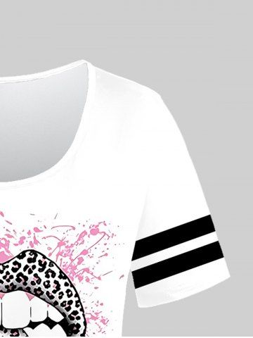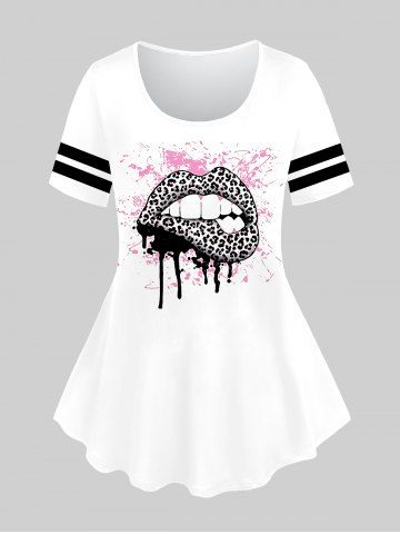 l*****m5Lip Leopard Printed Tee and Lace Panel Capri Leggings with Pocket Plus Size Summer OutfitColor: WHITESo stinking cute. Once again I ordered a large and if I bent over you could see right down the shirt. Gave it to my friend who is bustier than me and it was great on her. I reordered a smaller size, down to medium. Pants fit great but shirt felt a dress on me