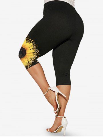 Sunflower Print Tee and High Waist Capri Leggings Plus Size Summer Outfit