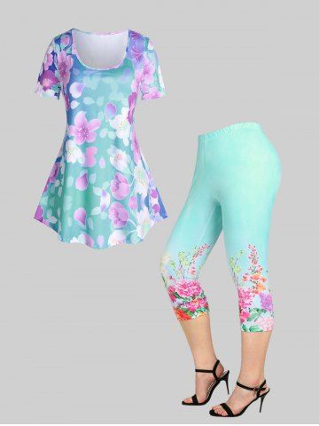 m*****85Colorblock Floral Print Tee and Skinny Capri Leggings Plus Size Summer OutfitColor: LIGHT BLUEI love this outfit and the material is so soft. I wore it to church for the first time and gave out the Rosegal website to many. It fits perfectly and looks so nice on. And did I mention that it is so soft?
