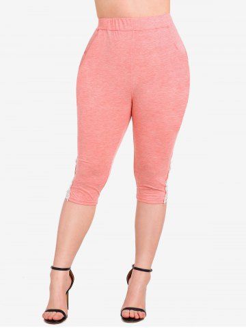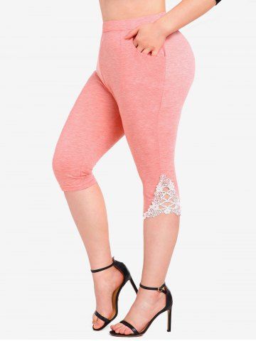 A*****i5Mesh Panel Ruched Flutter Sleeves Twofer Tee and Contrast Lace Panel Pocket Capri Leggings Plus Size OutfitsColor: LIGHT PINKLove this outfit. It’s cute and good quality material. Can wear it either dressed up or down depending on the shoes you wear with it.