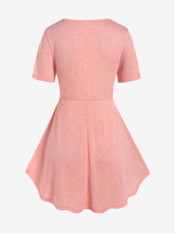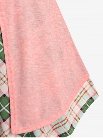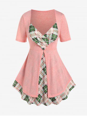 V*****25Plus Size Sweetheart Neck Plaid Short Sleeves Twofer TeeColor: LIGHT PINK Size: 2X | US 18-20Got the smaller size so it’s tighter and low but asnI lose weight it will get better. I got a 2x and should have gotten a 3x. I’m a 44 G on top so.