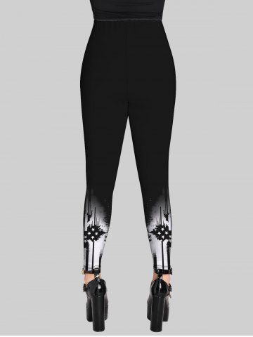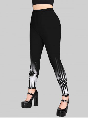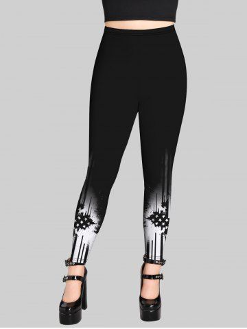 Leggings Góticos de Estampado de Bandera de Estados Unidos - Negro - Negro