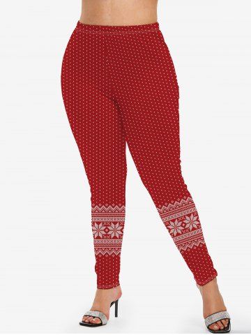 Leggings Navideños Talla Extra Estampado Copo de Nieve 3D - Rojo - Rojo