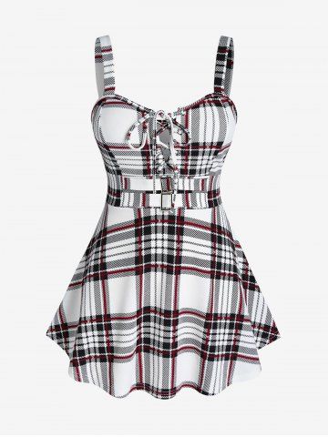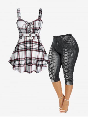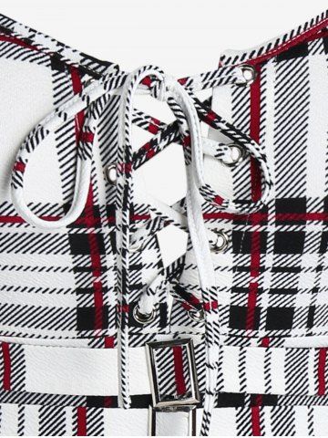 a*****95Lace Up Plaid Full Zipper Tank Top and Plaid Buckles High Waisted Mini Skirt Plus Size OutfitColor: BLACKI love this outfit it is true to size skirt is alittle longer then I thought but it’s still cute