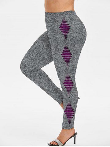 Leggings Talla Extra Delgados Estampado 3D Rasgados - Púrpura - Púrpura