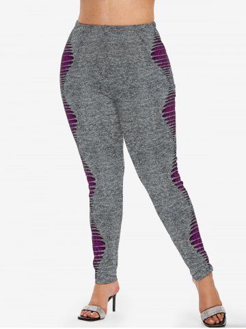 f*****c5Colorblock Cable Knit Panel Lace Up Tee and High Waist 3D Ripped Print Leggings Plus Size OutfitColor: LIGHT PINKGorgeous outfit! True to size and doesn't disappoint. Looks good with heels or a pair of white slip ons.