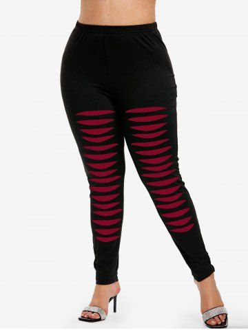 Leggings Talla Extra Dos Tonos Rasgados 3D - Color Rojo Oscuro - M | Us 10