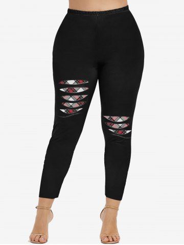 Graphic Leggings > Leggings Talla Extra Estampado a Cuadros 3D Rasgado