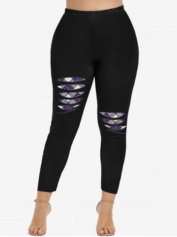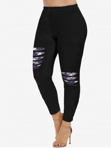 Leggings Talla Extra Estampado a Cuadros 3D Rasgado - Púrpura - Púrpura