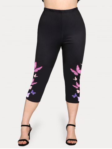 Graphic Leggings > Leggings Talla Extra Estampado Mariposa Curvo Cintura Alta