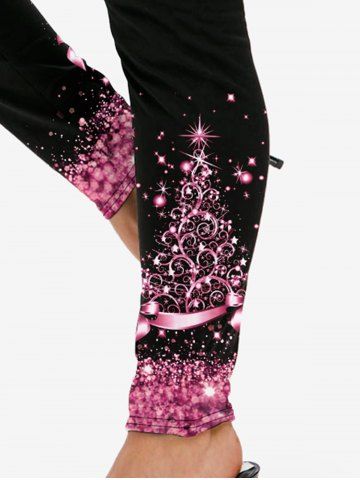 Christmas 3D Sparkles Printed Tee and Glitters Bowknot Printed Leggings Plus Size Matching Set
