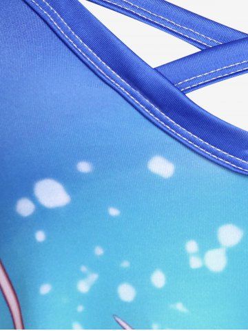 Maxi Vestido Degradado de Sol de Talla Extra con Estampado de Pluma de Color Degradado - Azul - Azul