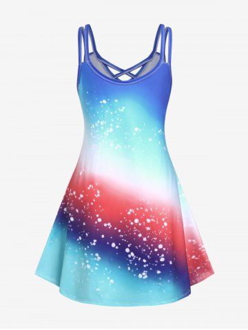 American Flag Dresses > Maxi Vestido Degradado de Sol de Talla Extra con Estampado de Pluma de Color Degradado