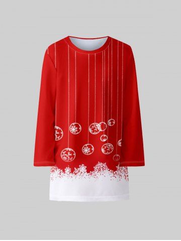 Plus Size Christmas Snowflake Balls Printed Colorblock A Line Dress