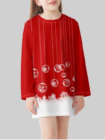 Mini Vestido de Camiseta de Niños Estampado Bolas de Copo de Nieve - Rojo - Rojo
