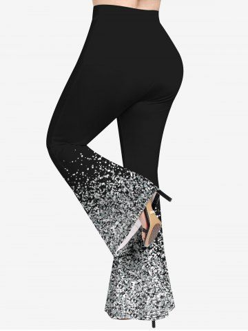 Pantalones Acampanados Estampado Cruces Tamaño Plus - Negro - Negro