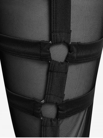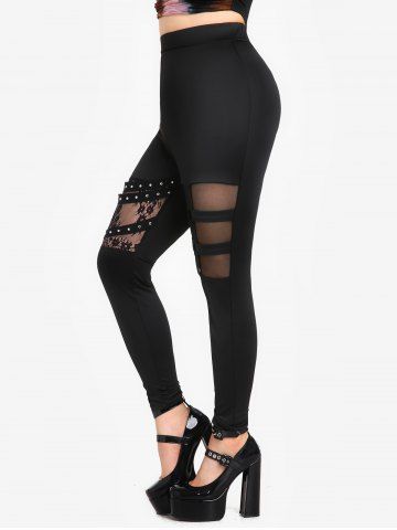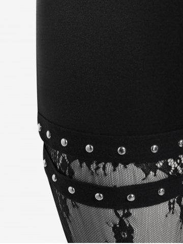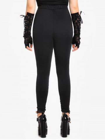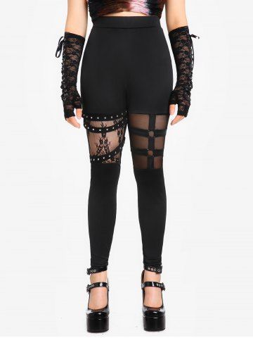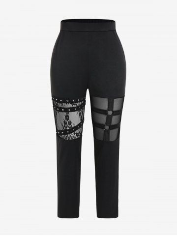 Pantalones de Delgados de Malla con Panel de Encaje de Gótico - Negro - Negro