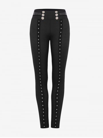 S*****a5Gothic Studs Skinny Wide Waistband PantsColor: BLACK Size: 4X | US 26-28I was pleasantly surprised at how comfortable these pants were! Nice long length