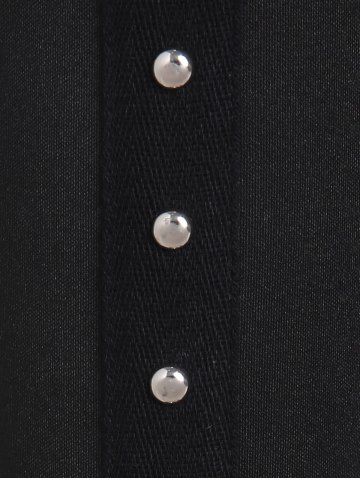 B*****a4Jacquard Lace-up Corset Shirt And Studs Skinny Wide Waistband Pants Gothic OutfitColor: BLACKYet another pretty set. While I am aware this is supposed to be form fitting, I wish the top was a bit more generous. It's all good though. I will make it work. The pants are snug but fit quite nicely. I will look quite sharp heading out with my hubby. 🤩