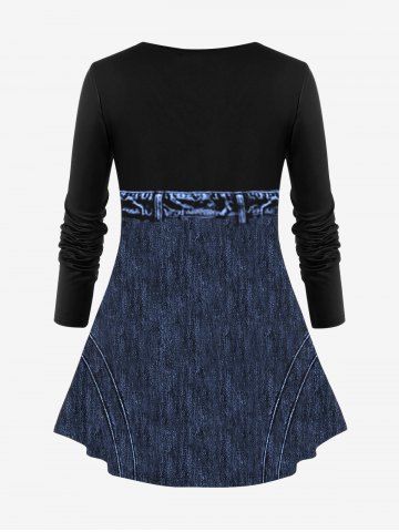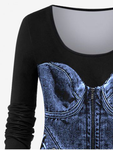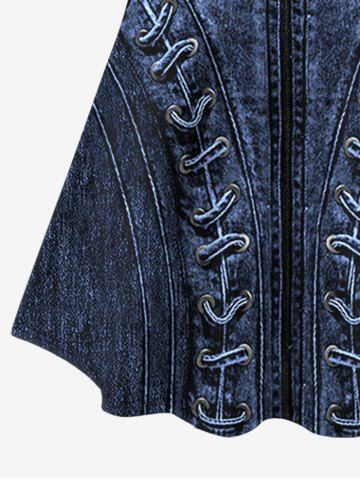 O*****e43D Denim Lace Up Zipper Printed Long Sleeves T-shirt and Patchwork Leggings Plus Size OutfitColor: DEEP BLUElove it so comfortable