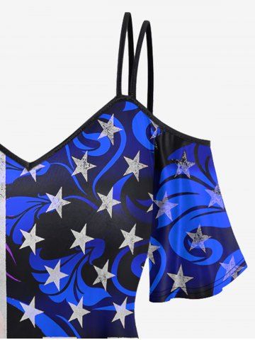 B*****y5American Flag Printed Cold Shoulder Tee and Flare Pants Plus Size Patriotic 70s 80s OutfitColor: BLACKI love these. I haven't wore them yet but super cute. I love matching outfits.