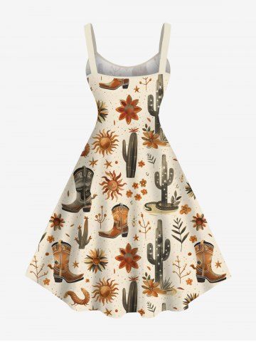 Graphic Dresses > Plus Size Cactus Plant Floral Sun Boots Print Hawaii A Line Tank Dress