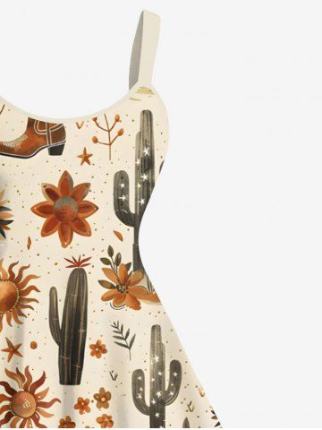 Plus Size Cactus Plant Floral Sun Boots Print Hawaii A Line Tank Dress - Café Luz - S
