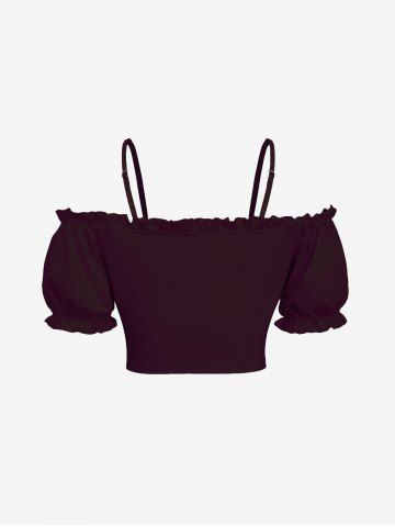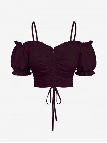 Plus Size Cinched Ruched Ruffles Cold Shoulder Cami Top - Color Rojo Oscuro - 6x