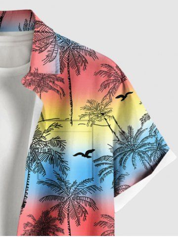 Short Sleeves Shirts > Plus Size Coconut Tree Bird Rainbow Ombre Colorblock Print Buttons Pocket Hawaii Shirt For Men