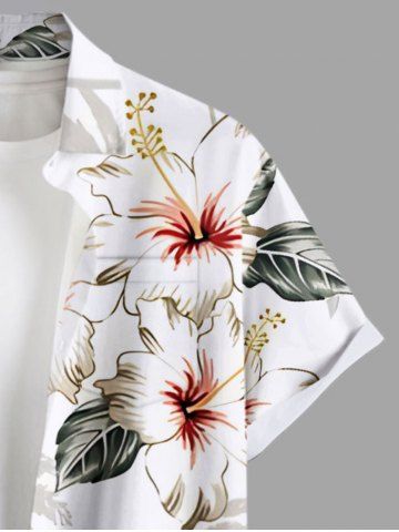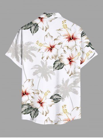 Short Sleeves Shirts > Plus Size Coconut Tree Hibiscus Flower Leaf Print Hawaii Button Pocket Shirt For Men