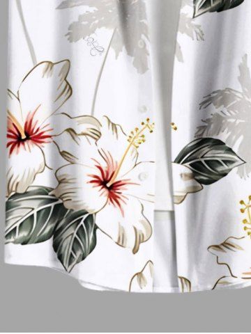 Plus Size Coconut Tree Hibiscus Flower Leaf Print Hawaii Button Pocket Shirt For Men - Crema De Cristal - 6xl