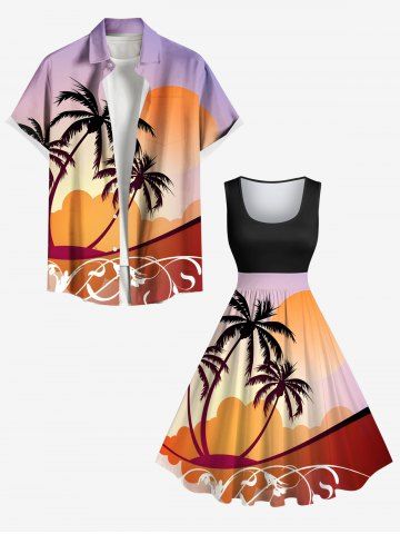 Graphic Dresses > Plus Size Coconut Tree Floral Sun Print Hawaii 1950s Vintage Dress