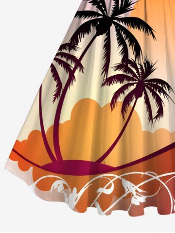 Graphic Dresses > Plus Size Coconut Tree Floral Sun Print Hawaii 1950s Vintage Dress