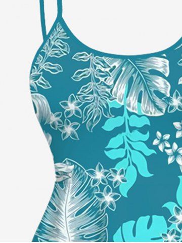 Plus Size Coconut Tree Leaf Flower Print Backless High Low A Line Hawaii Asymmetric Dress - Verde - Verde