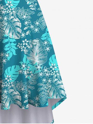 Plus Size Coconut Tree Leaf Flower Print Backless High Low A Line Hawaii Asymmetric Dress - Verde - Verde
