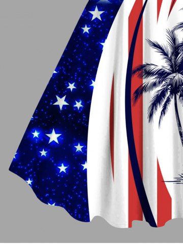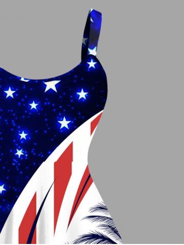Plus Size Coconut Tree Patriotic American Flag Curve Print Hawaii A Line Tank Dress - Azul - Azul