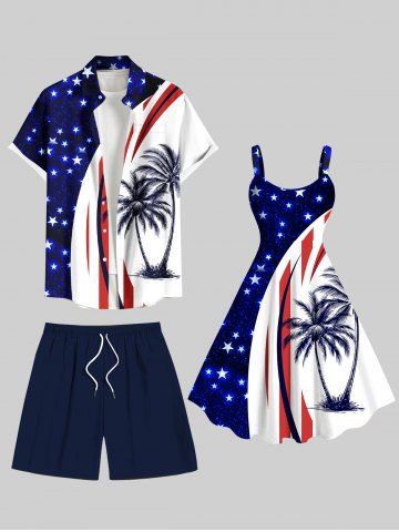 Coconut Tree Patriotic American Flag Curve Print Plus Size Matching Hawaii Beach Outfit For Couples