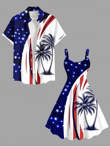Coconut Tree Patriotic American Flag Curve Print Plus Size Matching Hawaii Beach Outfit For Couples