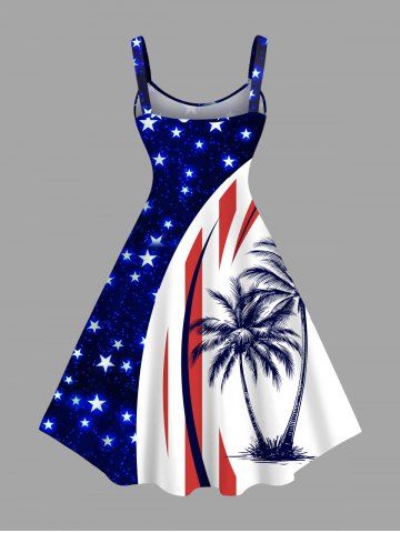 Graphic Dresses > Plus Size Coconut Tree Patriotic American Flag Curve Print Hawaii A Line Tank Dress