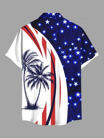 Plus Size Coconut Tree Patriotic American Flag Curve Print Hawaii Button Pocket Shirt For Men - Azul - Azul