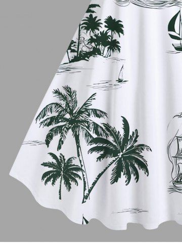 Plus Size Coconut Tree Sailboat Cruise Print Hawaii A Line Tank Dress - Blanco - Blanco