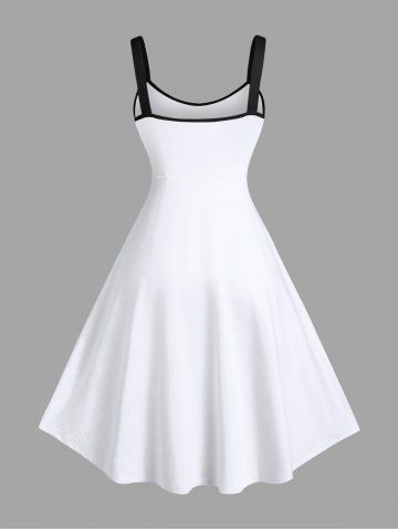 Plus Size Coconut Tree Sea Dolphin Sun Print Hawaii A Line Tank Dress - Blanco - Blanco