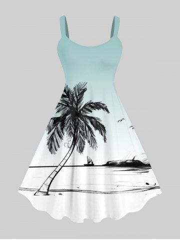 Plus Size Coconut Tree Seagull Sailboat Ombre Print Hawaii Tank Dress - Multicolor-a - 4x