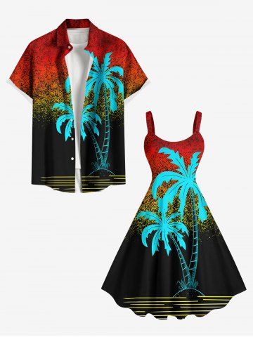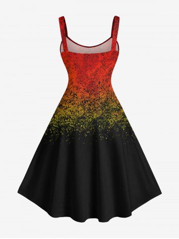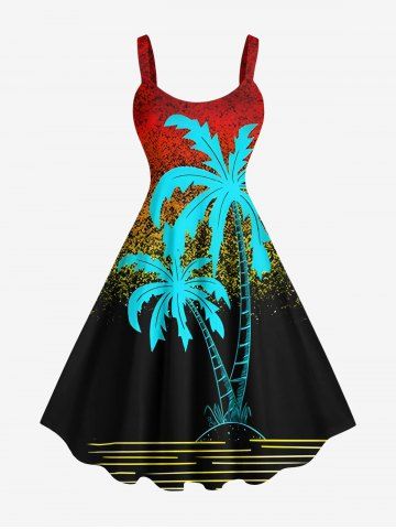 Plus Size Coconut Tree Spray Painting Print Hawaii Ombre A Line Dress - Rojo - Rojo
