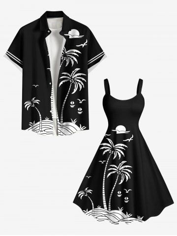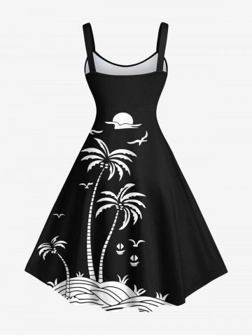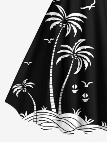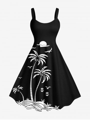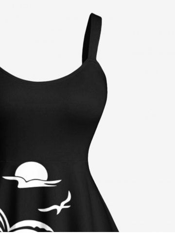 Plus Size Coconut Tree Sun Bird Two Tone Print Hawaii Tank Dress - Negro - Negro