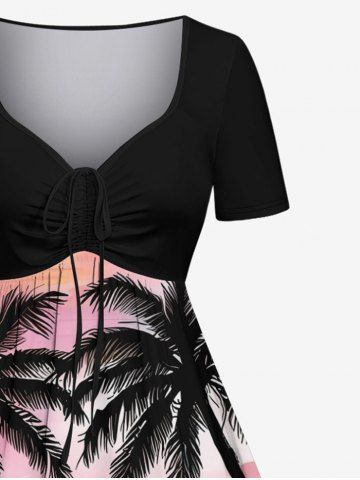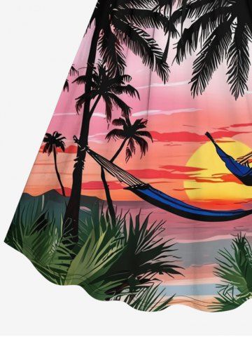 Plus Size Coconut Tree Sun Cloud Hammock Print Cinched Hawaii Dress - Rosa Claro - Rosa Luz