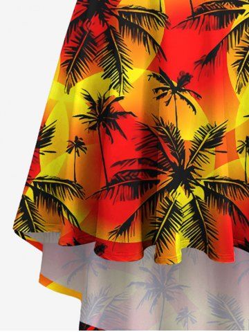 Plus Size Coconut Tree Sun Print High Low Hawaii Cami Dress - Naranja Oscuro - 5x